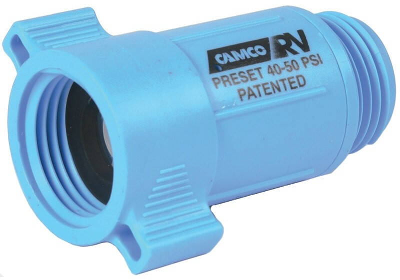 Camco RV and marine brass water pressure regulator helps to protect the RV and boat plumbing and hoses from damage caused by high-pressure city water. Reduce water pressure to a safe, consistent 40 to 50 psi of operational pressure. Protects appliances and plumbing fixtures and prevents hose failure, to help prolong equipment life. Female garden hose (3/4 to 11-1/2 NH) x Male garden hose (3/4 to 11-1/2 NH). For outdoor use only. Maximum incoming pressure is 125 psi.