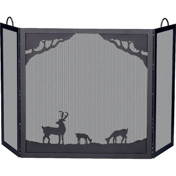 This 3-Panel Black Fireplace Screen features a deer and forest scene.