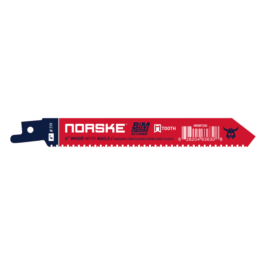This 6-inch reciprocating saw blade from Norske is built for fast, reliable cuts through wood with embedded nails and light-gauge metal, ideal for demolition, remodeling and framing work where speed and durability matter. Its patented M-Tooth design lets the robust teeth cut on both the forward and backstroke, delivering quick, precise cuts and above-average blade life compared with standard designs. Made from industrial bi-metal steel in Germany, the blade stands up to demanding jobsite use and is recommended for cutting steel over 1/16 inch as well as nail-embedded lumber. At six inches in length with five teeth per inch, it balances aggressive material removal with control, making it a practical choice when you need a dependable blade that handles mixed materials without frequent changes.