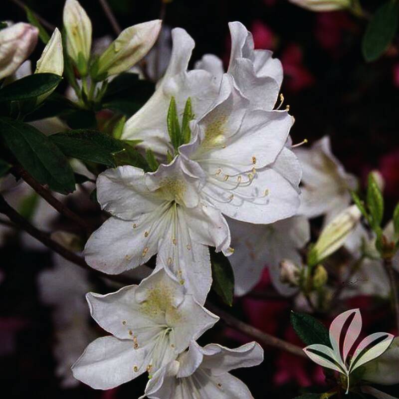 A beautiful evergreen Azalea that produces a mass of single, 3-inch diameter white blooms all spring. One of the best Azaleas for high light areas. This vigorous grower reaches 6 to 8 ft tall and 4 to 6 ft wide.