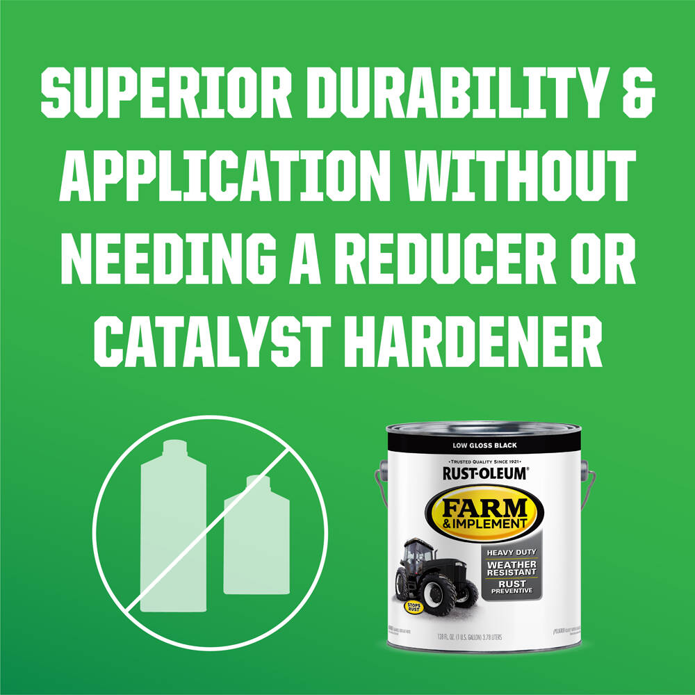 Rust-Oleum Farm & Implement Paints are durable, rust preventive enamels designed to match popular machine and equipment manufacturer colors. The Stops Rust formula offers excellent coverage, chip resistance and color retention for a finish that withstands heavy work conditions and weathering. Perfect for recoloring or touching up paint on tractors, trailers, lawn mowers and more.