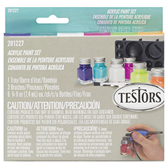 TESTORS acrylic paint sets are the perfect gift item for casual and younger modelers and hobbyist. These quality paints in the tiny bottles are also great for school and scout projects, craft projects, wood working, just about anything that requires painting. TESTORS acrylic paints are fast drying, non-toxic, easy water wash-up and low odor. TESTORS offers a wide variety of acrylic paint sets for different applications.