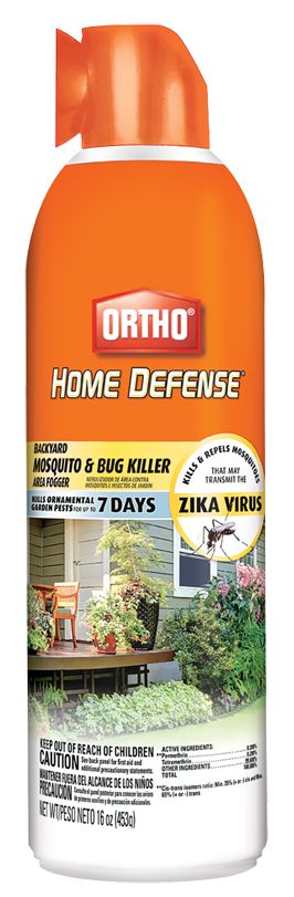 Ortho Home Defense Backyard Mosquito and Bug Killer Area Fogger allows you to protect your lawn and landscape from mosquitoes that may transmit diseases like Zika and West Nile. Simply press the valve and let the aerosol mist kill and repel these outdoors pests in the hard-to-reach places where they thrive.