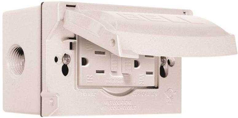 SINGLE GANG - WEATHERPROOF HORIZONTAL SELF TESTING GFCI Boxed Color=White