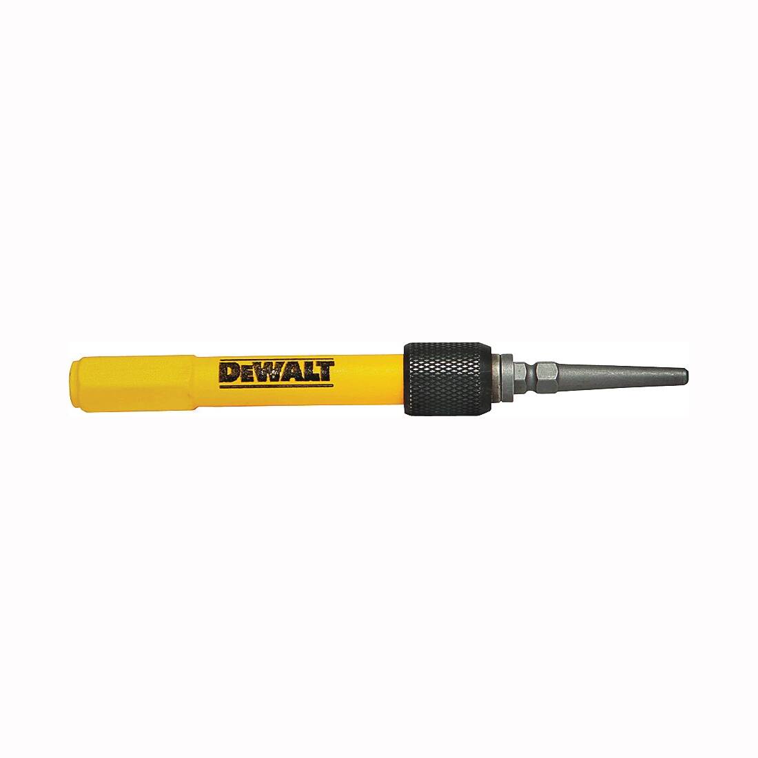 Interchangeable tip for convenience. Hexagonal head prevents rolling and can be used as a standard drill chuck - nail set doubles as drill extension. Knurled locking collar for easy nail release and reversal. Accepts standard screwdriver bits for versatility. Long, beveled tip for easy nail head alignment. Fully hardened, precision-milled steel for long life. Set includes 1/32 in , 2/32 in , 3/32 in and #2 point Phillips nails.