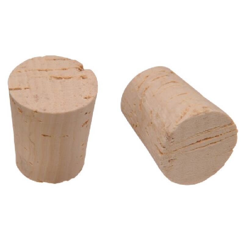 Cork is an impermeable, buoyant material comprised of bark tissue that has been harvested and refined for commercial use. The medium cork stoppers have a tapered shape to provide a secure seal in various sized containers. The natural cork construction can be cut to an exact length and its natural elasticity helps form a tight seal. Commonly used as bottle stoppers.