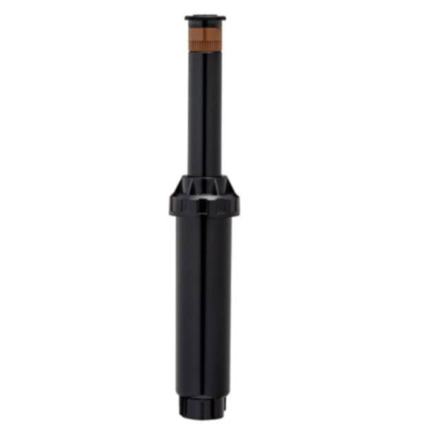 The spring-loaded pop-up sprinkler head with full spray pattern nozzle, with its standard plastic cap and long lasting, durable construction, offers convenience, ease and value. This medium area sprinkler head includes a plastic nozzle with an adjustment screw for easy flow and radius adjustment. A drop-in filter helps prevent a plugged nozzle. A stainless steel retraction spring and a wiper seal to keep out sand and grit.