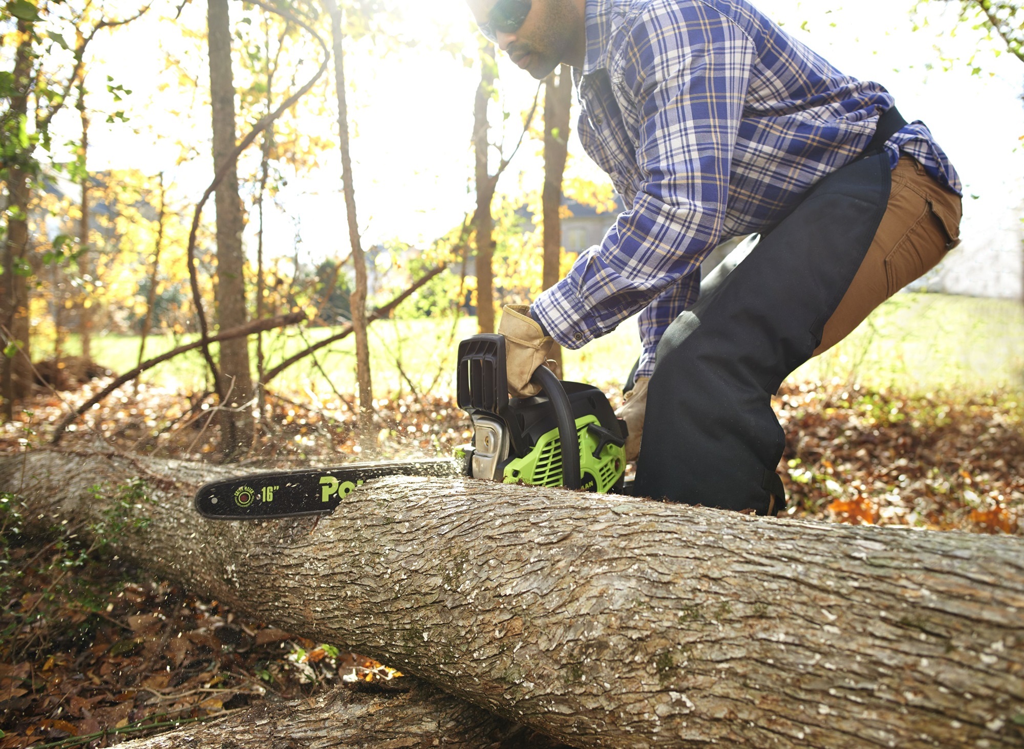 Powered by a 38cc 2-cycle gas engine, the Poulan PL3816 chainsaw is equipped with a 16-inch steel bar and chain. Lightweight and perfect for cutting firewood and tree limbs around the house