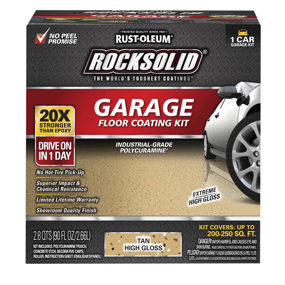 1 Car High Gloss Tan RockSolid Polycuramine Garage Floor Coating Kit