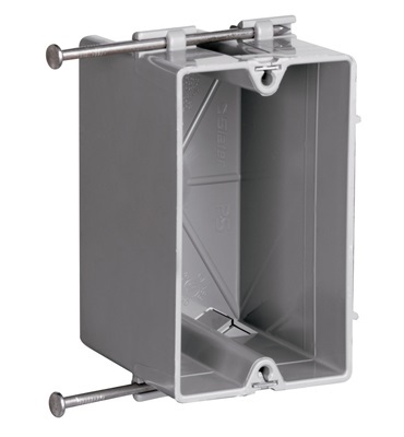 Single Gang Switch and Outlet Box is durable and an impact-resistant thermoplastic box. Its has innovative extras that cut installation time like the two Quick/Click entries on each end. It has captive mounting nails on each end.