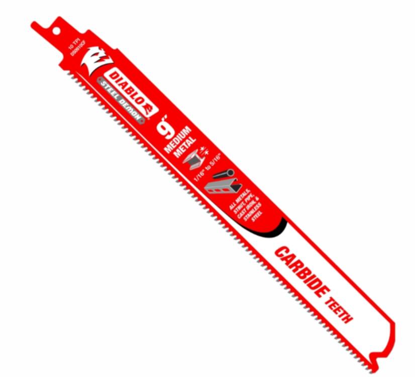 Steel Demon carbide 10 TPI medium metal cutting recip blade delivers 50x longer cutting life and clean finish in strut, pipe, stainless steel and all other metals ranging in 1/16 in to 5/16 in thickness.