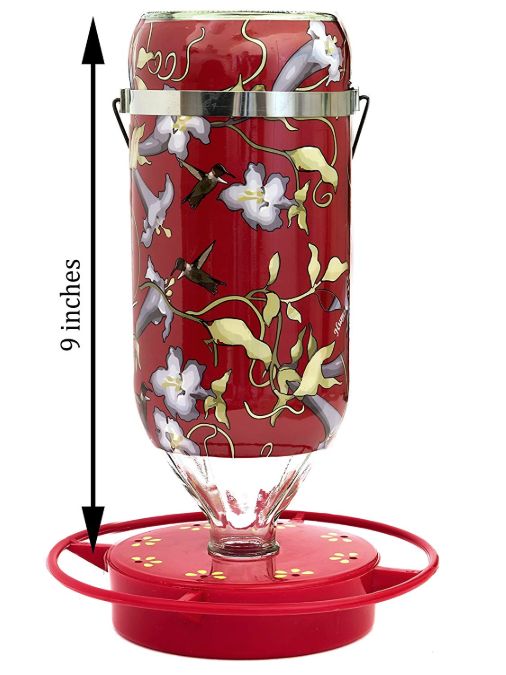 32-Ounce New Vine Glass Hanging Hummingbird Feeder