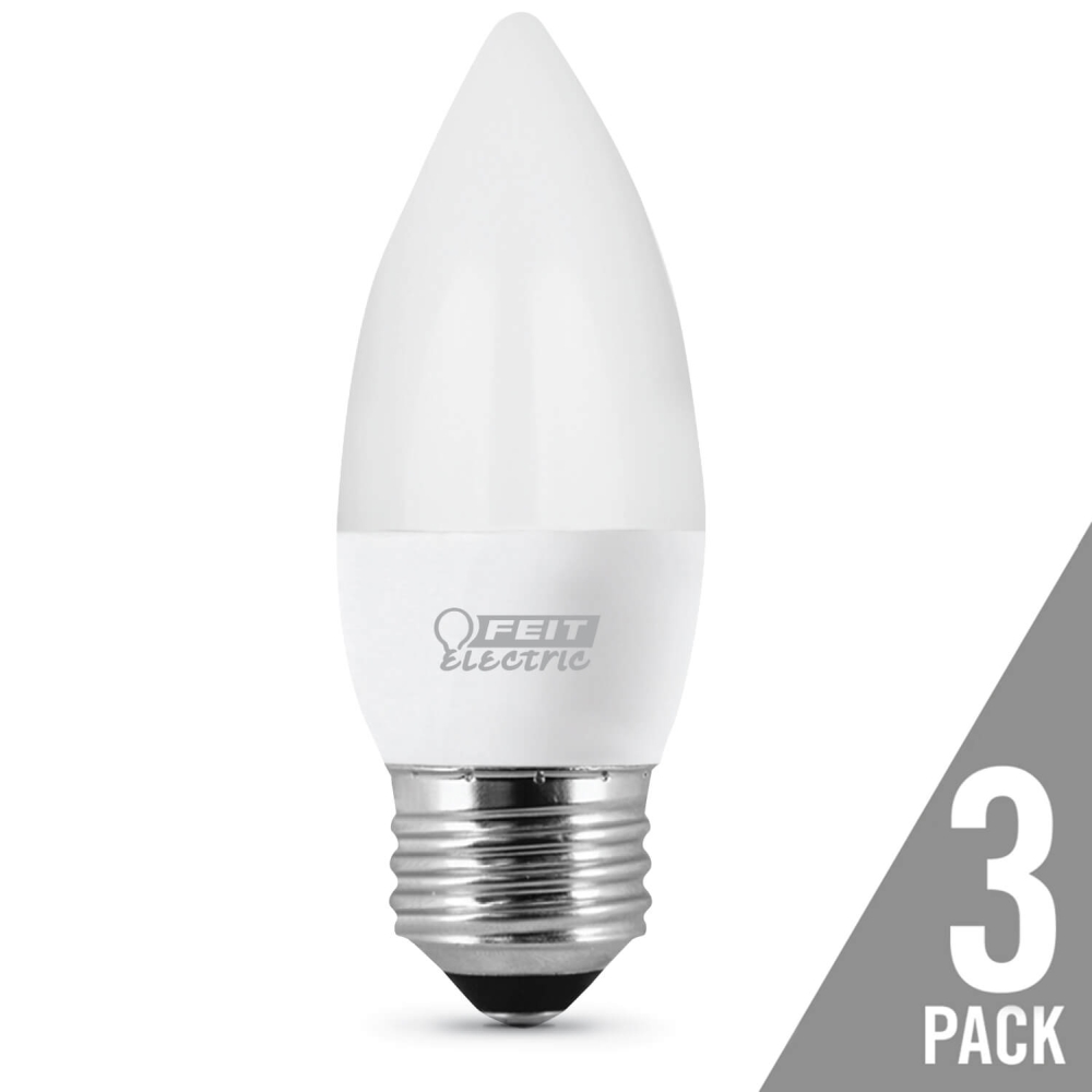 Enjoy all the benefits of advanced LED energy-saving technology with the Feit Electric etf40/10kled/3 3-pack etf40 40w LED light bulbs. This 3000k warm white light is non-dimmable and will replace 40-watt equivalent incandescent bulbs. It produces a similar light output (300 lumens) and uses 4.5 Watts of electricity and up to 89% less energy than a standard incandescent light bulb. Get instant on to full brightness with relatively cool running performance. Feit Electric etf40 bulbs have an average life of 11,000 hours / 10 years, are ROHS compliant and 100% mercury free. Choose a dependable bulb for decorative and chandelier lighting for residential or commercial applications.
