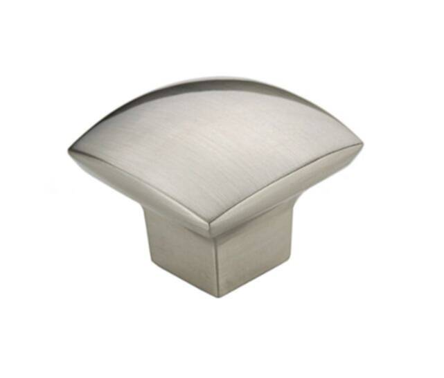 Contemporary square metal knob by Richelieu with a square base. Perfect for furniture and cabinets with clean and simple lines; the head of this square knob has a smooth, slightly convex crown.