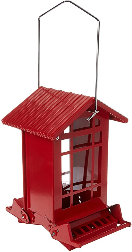 Holds up to 7 lbs. of seed. Spring activated perch can be adjusted for desired bird types and prevents squirrel's access to seed. Perches contain no waste seed saver.