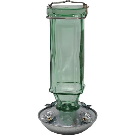 Glass Hummingbird feeder with galvanized base.