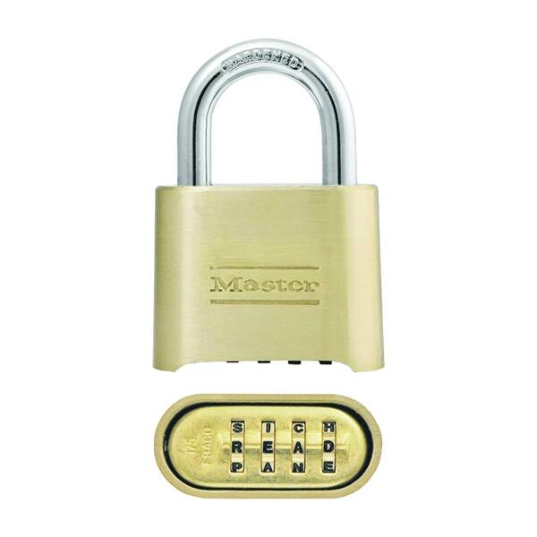 The Master Lock Number 175DWD Set Your Own WORD Combination Padlock features a 2 in (51 mm) wide solid body for strength and reliability. The 5/16 in (8 mm) diameter shackle is 1 in (25 mm) long and made of hardened steel, offering extra resistance to cutting and sawing. The 4-digit dialing allows for thousands of possible word combinations. The Limited Lifetime Warranty provides peace of mind from a brand you can trust.