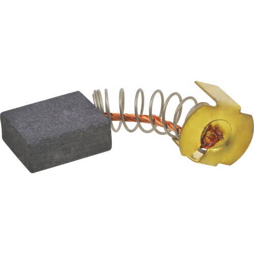 Carbon brushes conduct current between stationary wires and moving parts, most commonly in a rotating shaft.