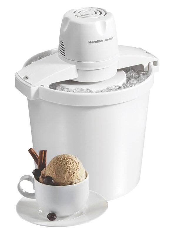The Hamilton Beach 4-Quart White Ice-Cream Maker makes homemade frozen treats easy and fun, perfect for families or anyone who loves customizing desserts. It’s fully automatic—no stirring required—so you simply add ingredients, ice and rock salt and the machine does all the work, then stops when your ice cream is ready. The 4-quart capacity lets you churn enough for gatherings, and an easy-lock lid fits and secures with a quick turn so mix-ins stay in place. Over 20 recipes are included to jump-start your creations, or combine candy, cookies or fresh fruit to craft your own flavors. Use it to make classic vanilla, inventive fruit swirls, or rich cookie-studded tubs for parties, weeknight treats, or weekend experiments.