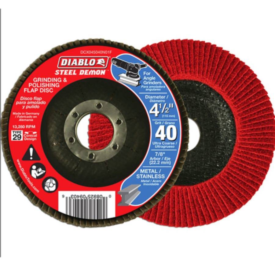 Diablo's Steel Demon™ flap discs feature a premium zirconium grain blend for up to 10X faster material removal when compared to standard grinding wheels. The flap discs' special flap design offers flexibility and provides for a cushioned grinding effect. Diablo's high performance flap discs combine two steps in one by simultaneously grinding and polishing.