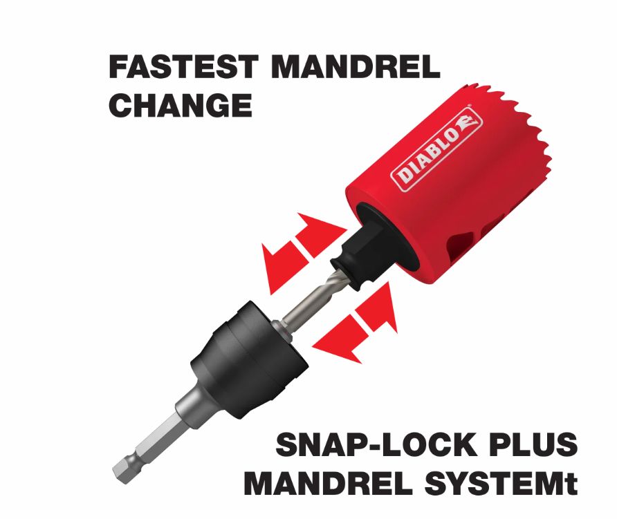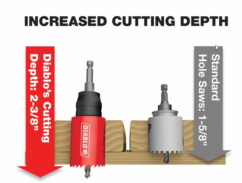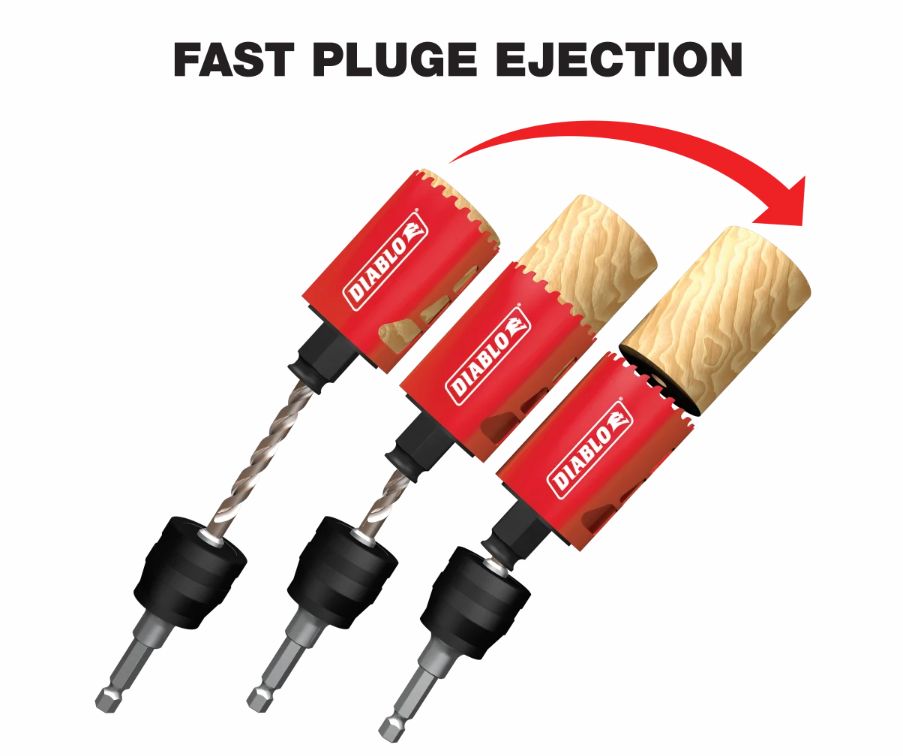 Diablos new, high performance hole saws deliver faster cutting performance and increased productivity. Unlike anything on the market, Diablos hole saw system and mandrel design simplify the attachment process for fast and efficient hole saw mounting. These radical new hole saws provide ultimate cutting length to bore deeper holes in a single pass, tool-free plug ejection and Variable Tooth Design for faster cuts.