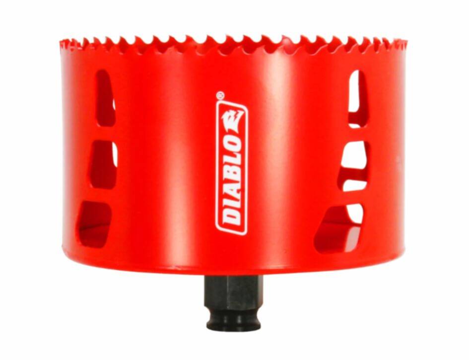 Diablos new, high performance hole saws deliver faster cutting performance and increased productivity. Unlike anything on the market, Diablos hole saw system and mandrel design simplify the attachment process for fast and efficient hole saw mounting. These radical new hole saws provide ultimate cutting length to bore deeper holes in a single pass, tool-free plug ejection and Variable Tooth Design for faster cuts.