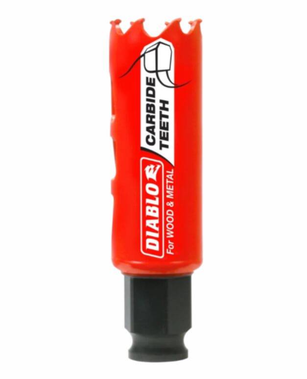 Diablo introduces the first carbide-tipped hole saws on the market to cut both wood and metal (wood, nail-embedded wood, plastic, aluminum, metal, cast iron, stainless steel and metal). Delivering 50 times longer cutting life than bi-metal, these new carbide-tipped hole saws offer faster cutting performance and increased productivity.