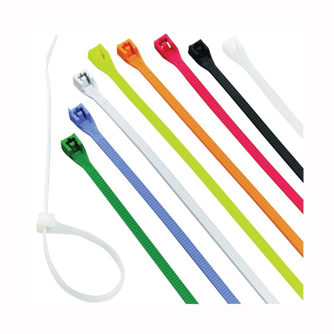 Designed for strength, durability and reliability. Ideal for all bundling and organizing tasks from the workshop to the office and from the laundry room to the kitchen; you name it and these ties will bundle it. Designed with simple enhancements that make them easy to use including a slightly bent tip to ensure easy insertion into the tie head and close serrations along its length to promote precise adjustment when tightening.