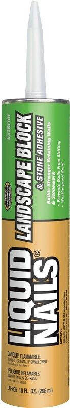 Liquid NailsĀ® landscape block and stone adhesive, Ln-905, is a weather-proof construction adhesive to prevent shifting and loosening of blocks, stones and timbers due to seasonal changes. Bonds together all stone, block and timber into one superstrong structure.