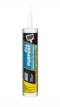 DAP ALL PURPOSE construction adhesive is a premium grade adhesive ideal for paneling, foamboard, cove base, trim & more. DAP ALL PURPOSE delivers a strong, permanent bond on common building materials.