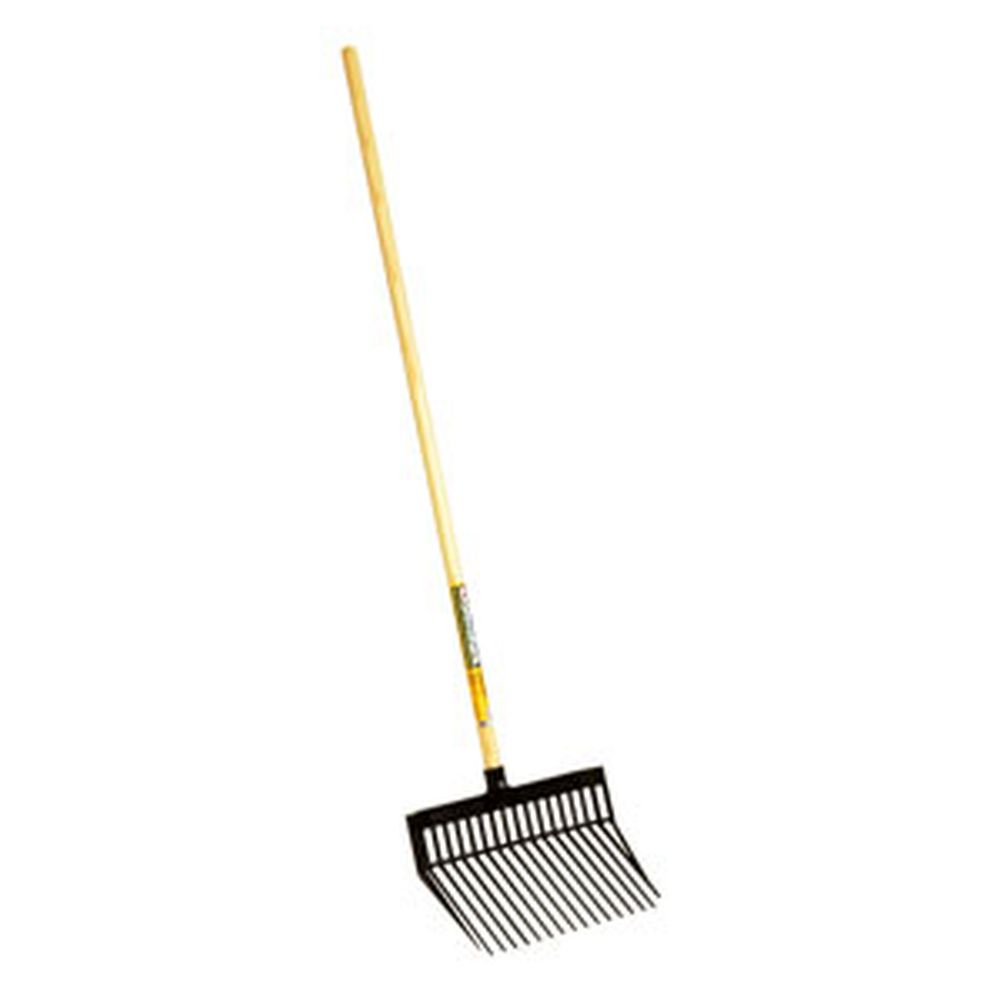 This is the original Little Giant DuraFork bedding fork that is a fixture in stables and barns everywhere. Manufactured from extra-strong 100 percent polycarbonate to provide super strength and flexibility. Designed for long-lasting use around the farm, ranch, and home. Specially designed tines are uniquely angled to provide easy manure pickup with less spilling. Nylon locknut secures the 52-Inch long by 1.125-Inch diameter hardwood handle. Fork head is 13.125-Inches long by 15.125-Inches wide. Black fork head.