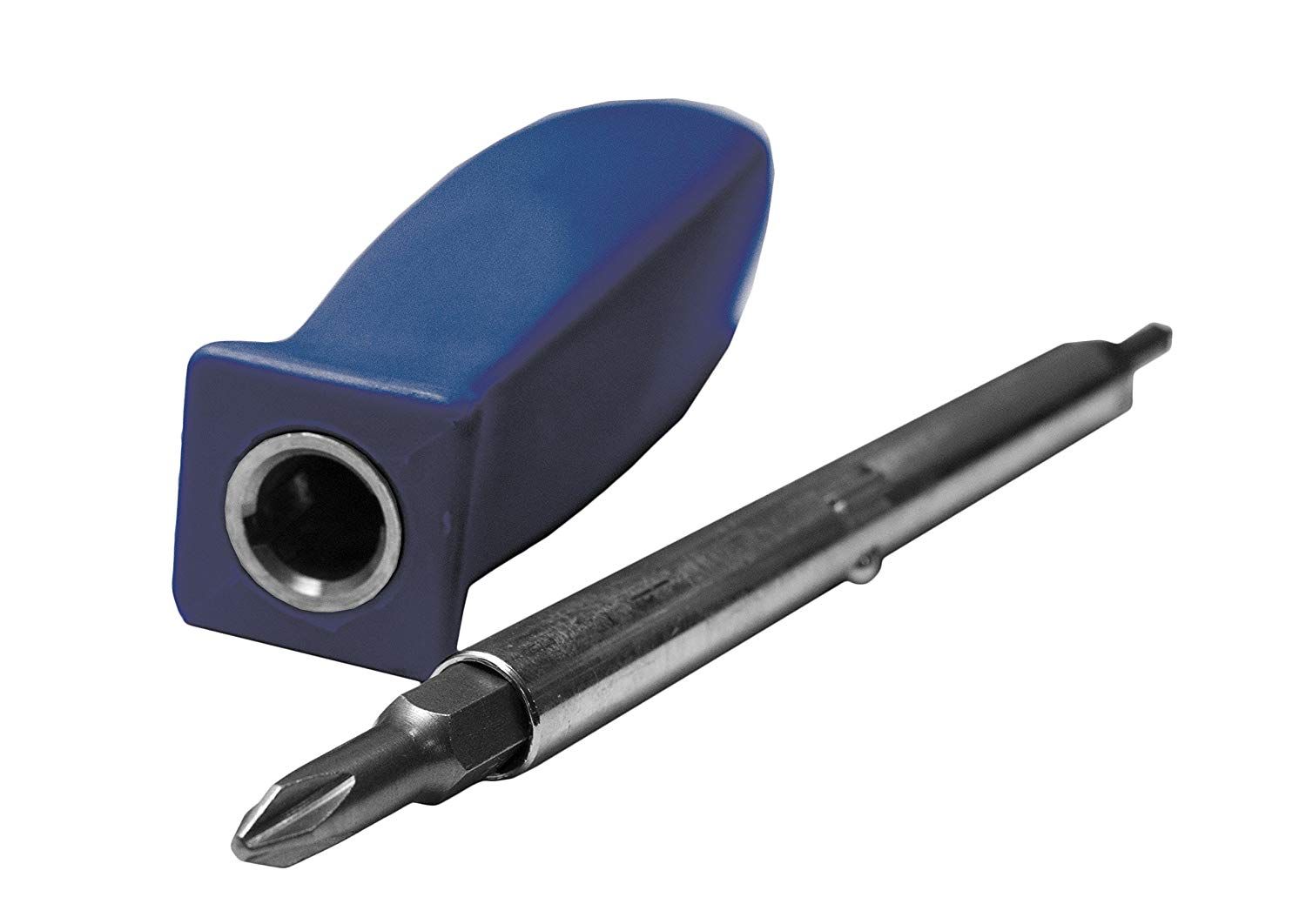 6-in-1 screwdriver with #1, #2 Phillips, 3/16-Inch and 1/4-Inch slotted tips and 1/4-inch hex drive and magnetic hand driver.