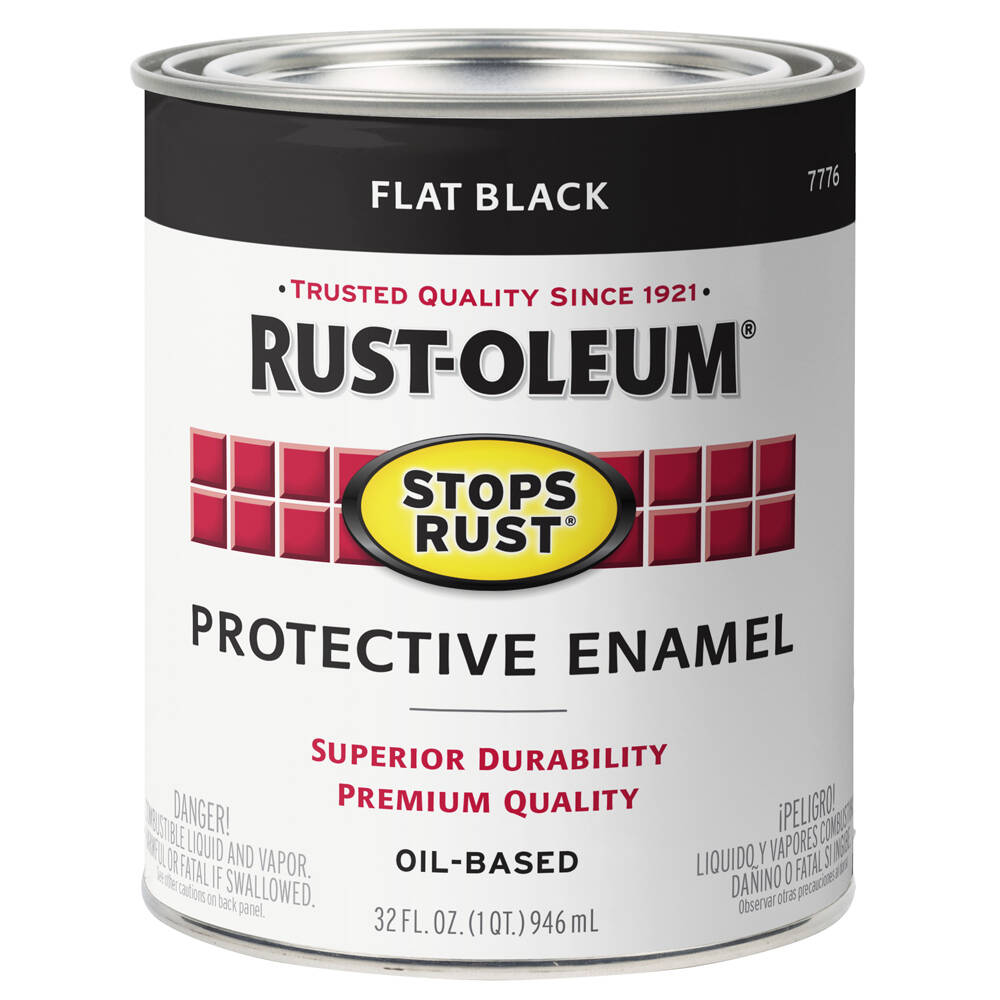 Rust-Oleum Stops Rust Protective Enamel Flat Paint makes it easy to refinish and refresh. Works great on outdoor light fixtures, patio furniture, wheel barrows, wrought iron, bicycles and any metal surface. This classic low sheen finish is ideal for indoor and outdoor projects.