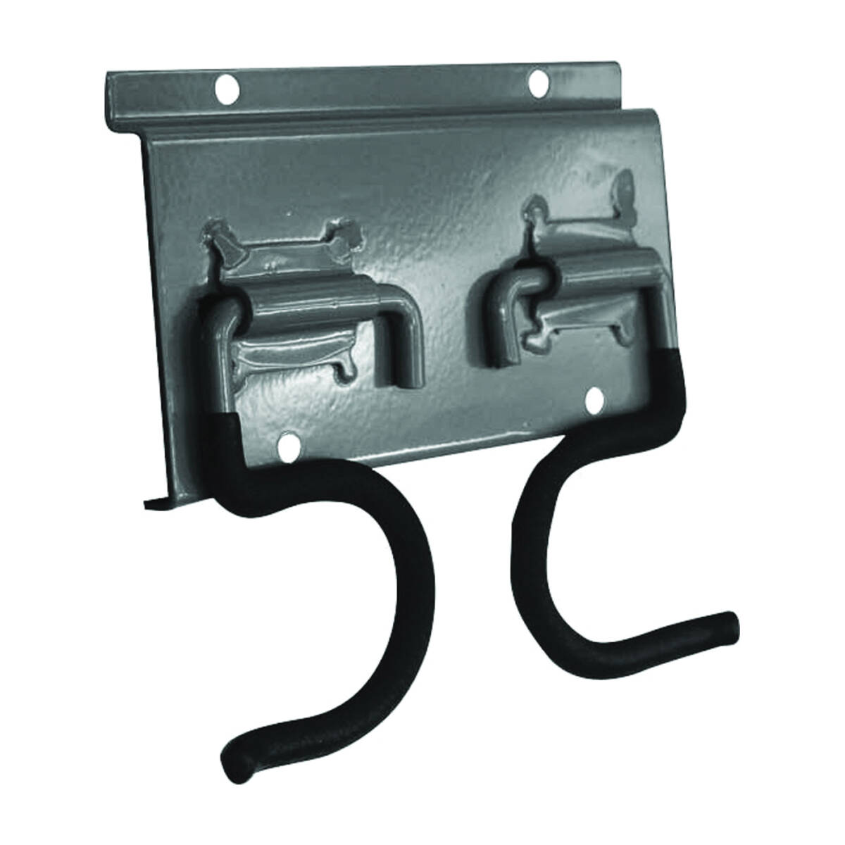 Two oversized hooks to hang long or short handled tools handle side up or down. Great for bats, rackets, hockey sticks. Safe working load of 50/40 lb.