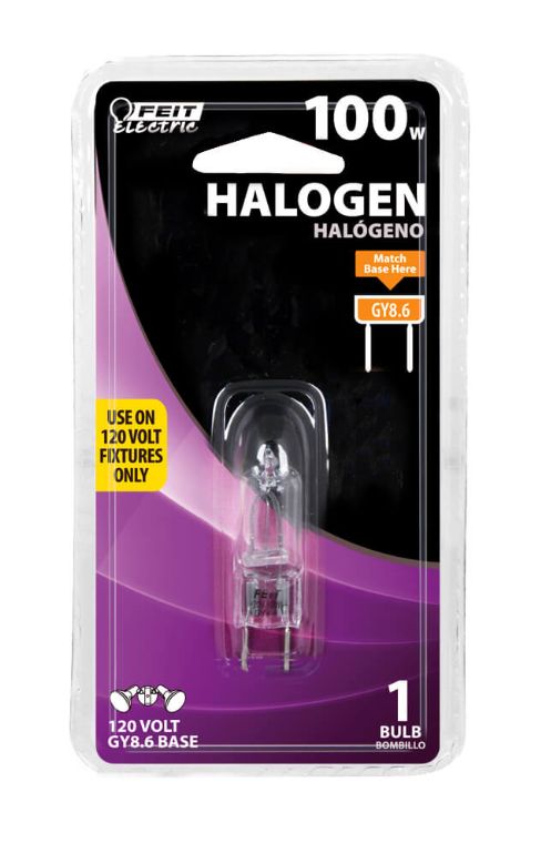 2-PIN/GY8.6 T-4 - JCD - CLEAR 2-1/4" OVERALL LENGTH Watts/ Volts=100/120 Avg Life/ Hours=2,000