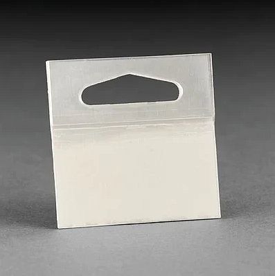 3M™ hang tab 1075 tabs are great for hanging shrink-wrapped packages and in-store repair of damaged packaging, such as torn punches in chipboard header cards. Merchandise remains stocked while eliminating unnecessary and messy clutter from damaged packages. These tabs allow products to hang for easy visibility or provide an attractive facing when displayed on shelves.
