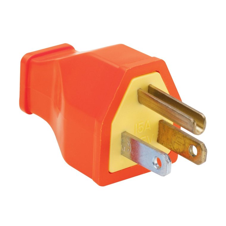 This Legrand/Pass & Seymour 15A plug is a bright orange connector for standard 15-amp circuits, making cords and outlets easy to spot on busy job sites or in home workshops. Its high-visibility color helps reduce misplaced power lines and simplifies powering tools, lamps and small appliances where quick identification matters.