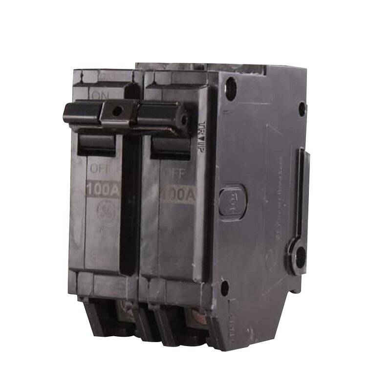 GE Circuit Breaker, 120/240 V, 100 A, Number of Poles: 2, Interrupt Rating: 10 kA, Plug Mounting, Tin, Dimensions: 2 in W, Suitable for: GE PowerMark Gold Load Center
