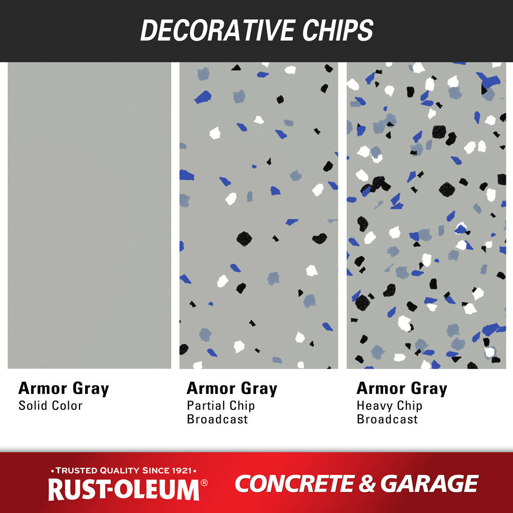 Rust-Oleum Satin Concrete Floor Paint adds color to garages, driveways, patios, walkways, basements, pool decks, carports and shop floors. Apply for protection from UV and weather wear, as well as hot tires and chemicals. Self-primes with 1-part epoxy acrylic technology.