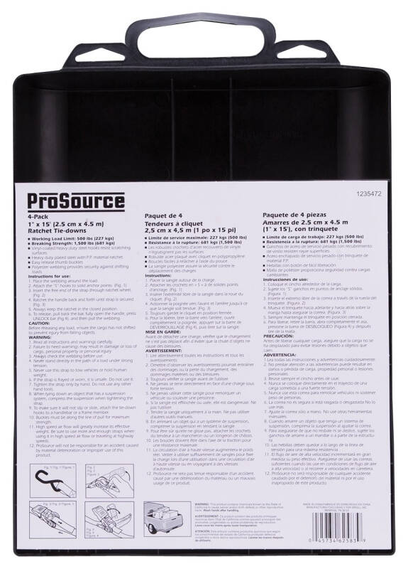 1-Inch X 15-Foot Ratchet Tie Down, 4-Pack