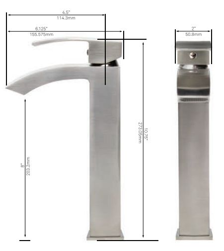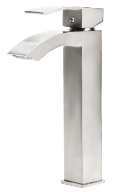 Upgrade your bath to a touch of style and sophistication with Novatto's Steger, a sleek waterfall vessel faucet. Specifically designed to accommodate a vessel sink, this single-hole faucet is to be mounted directly on the counter. Our taller faucet design provides more room under the spout for washing and cleaning hands. A single lever controls the temperature and water pressure. Durable and easy to clean, the Steger is constructed of solid brass with lifelong finishes available in oil-rubbed bronze, brushed nickel, matte black, and chrome. A high-pressure ceramic cartridge ensures longevity and trouble-free use. Supply lines, mounting hardware, and instructions are included for quick and easy installation. A 1.5-inch hole is needed for standard U.S. plumbing installation. AB1953 Low Lead Compliant; cUPC and NSF Certified. Spout reach: 4.8 inches; Spout height: 8 inches.