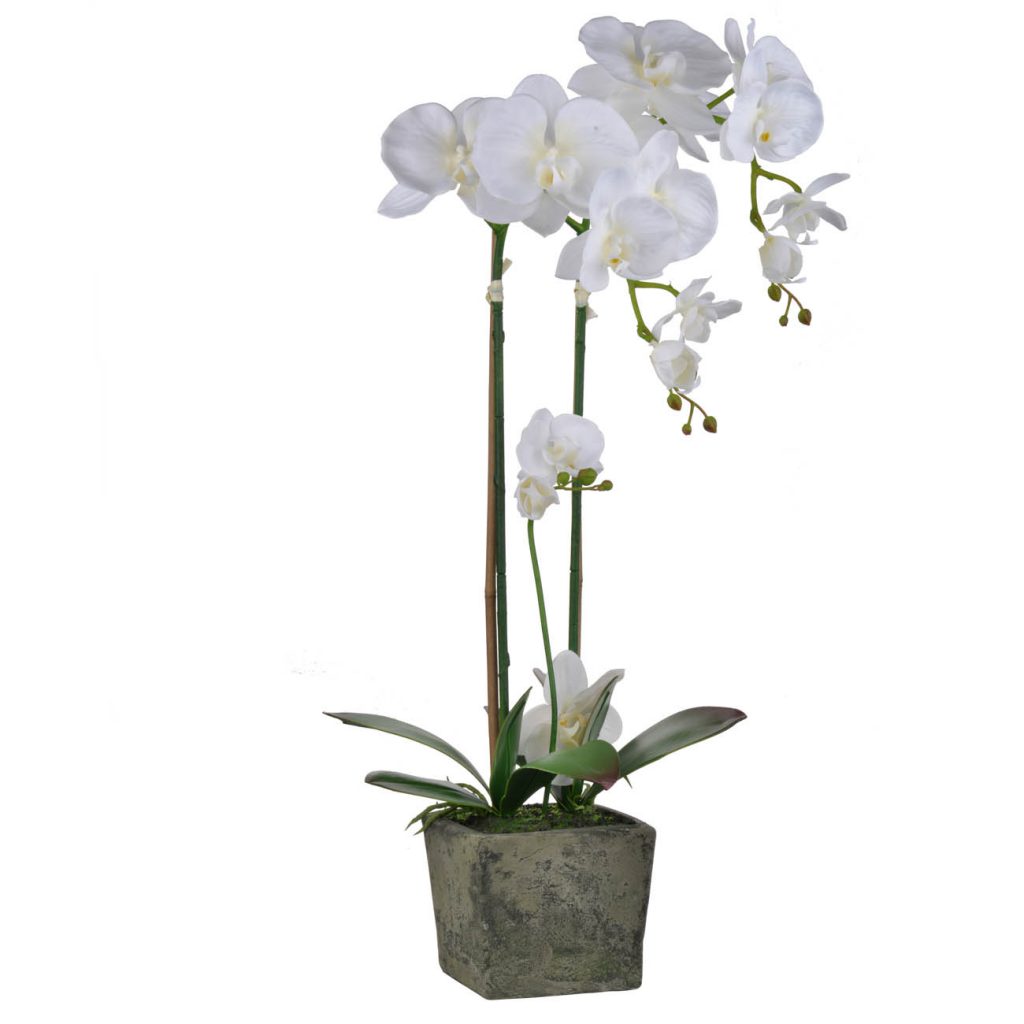 Featuring all the lavish beauty of a real orchid, the cream-colored Square Potted Orchid offers both elegance and ease as a durable, long-lasting faux floral. The crisp cream and rich greenery adds a lush look to any home or office. Enjoy the extravagant beauty of an orchid in a office entryway, lofty grand kitchen, intimate dining room, or chic master bathroom.