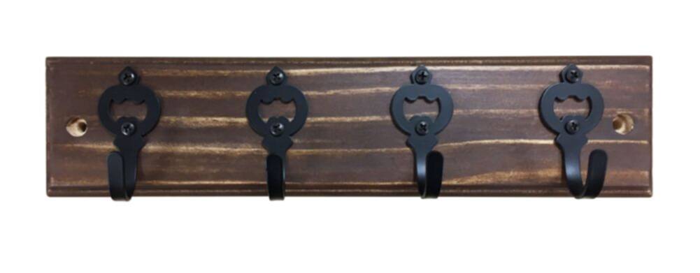 12-Inch Rustic Wood & Matte Black Classic Hook Rack