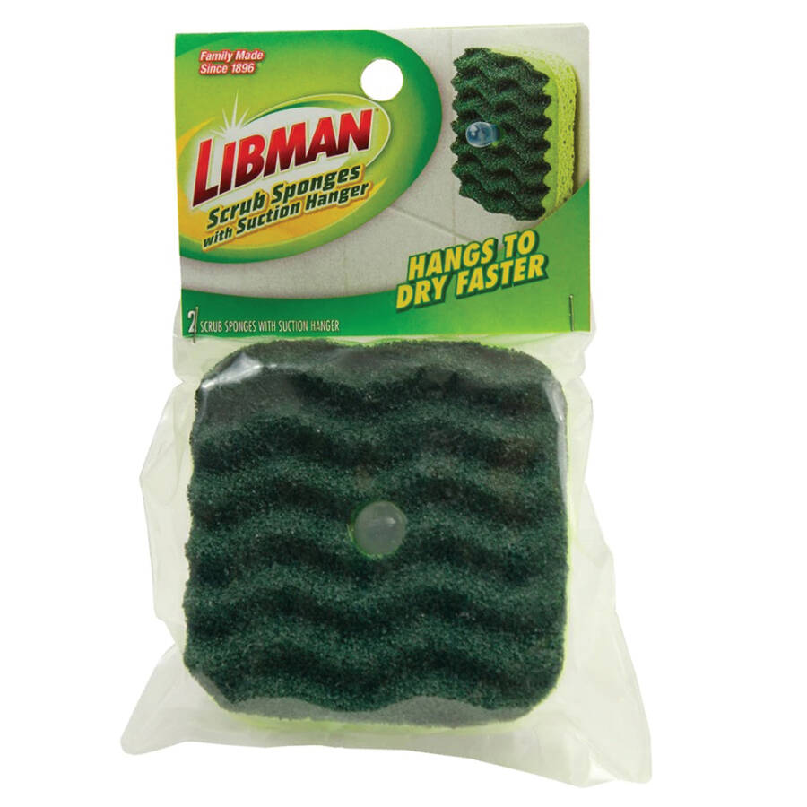 Keep your kitchen and sink more organized with the Libman scrub sponges with suction hanger. The scrub sponge itself features deep grooves designed to remove debris from difference surfaces without getting clogged. The scrubbing surface powers through tough, stuck-on food, while the sponge wipes surfaces clean quickly. The included suction hanger sticks securely to any smooth surface and allows you to store the sponge to dry thoroughly.