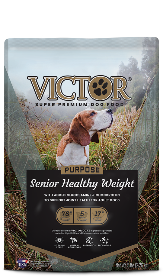 VICTOR Senior Healthy Weight is an excellent choice for older dogs that are less active, and adult dogs that need to reduce overall weight. This multi-protein, nutrient-dense formula is specially formulated for breeds that are susceptible to joint issues.