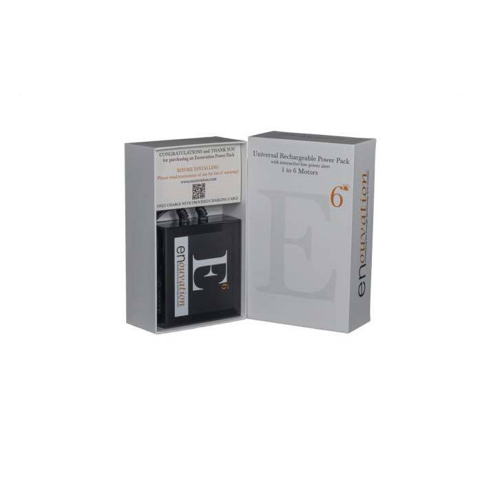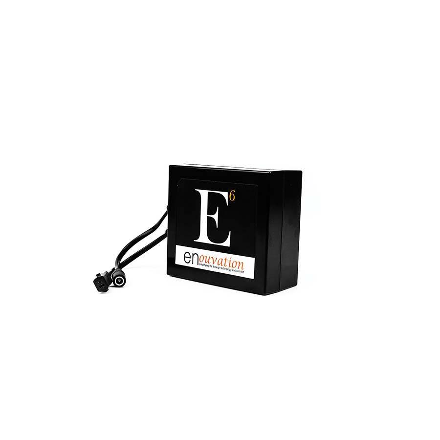 The E6 power pack from enouvation with patents pending, offers you the ability to cut the cord on power motion furniture. This gives you the ability to float a power motion piece of furniture without having to see those unsightly, industrial cords. The E6 will give your sofa with power headrests approximately 600 cycles and recliner 1200 cycles before having to recharge. It will also power lift chairs and adjustable bed frames. enouvation power packs are tested to multiple UL standards and certified, having gone through rigorous testing. They are the most efficient battery in the marketplace with twice the power, half the size. All power packs have an LED power indicator that shows the level of power in the tank and an interactive power alert when the battery runs low. Each power pack comes with its own charger in box.