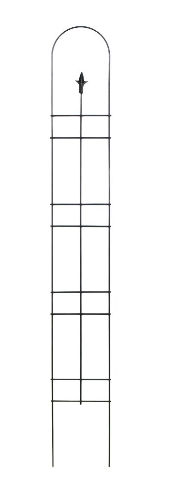 This 60-inch high narrow trellis makes a great pot trellis for climbing vine plants such as clematis, trumpet vine and climbing roses in containers or can be used against a building. A single fleur-de-lys metal stamping provides visual, architectural interest. Its 8-inch width keeps this trellis compact yet gives plant adequate room to sprawl. Eight horizontal cross wires are evenly to encourage plants to climb. Black, powder coated finish and pre-galvanized treatment provides lasting beauty.