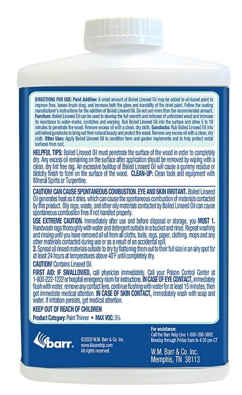 Klean-Strip® boiled linseed oil is a classic wood finish and natural protectant that is produced from the seed of the flax plant and processed so that it will dry faster than raw linseed oil. Boiled linseed oil protects and seals unfinished wood surfaces and produces a beautiful hand rubbed finish on fine wood and antiques.