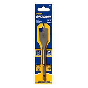 This IRWIN spade drill bit is a heavy-duty 15/16-inch flat-flute bit designed to make large wood holes faster and cleaner. You’ll appreciate the Blue-Groove point and cutting edge that evacuate chips up to four times faster than standard spade bits, while the double cutting spurs scribe the hole perimeter to reduce breakout for neater openings when drilling through trim, door frames, or deck boards. The 6-inch overall length and 1/4-inch diameter grooved hex shank give reach and a secure grip in quick-change chucks and bit extensions, with a 10% larger shank for added durability. Use it for running wiring, installing locksets, boring for conduit, or other rough carpentry where speed and cleaner hole edges matter. Made in China, this bit combines aggressive cutting with a slip-resistant hex shank for reliable performance.