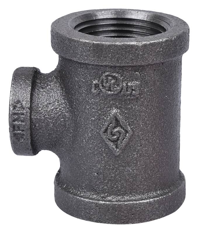 1 in. x 1 in. x 1/2 in. Malleable Iron Black Pipe Tee Fitting - Threaded, Schedule 40, 1-Pack